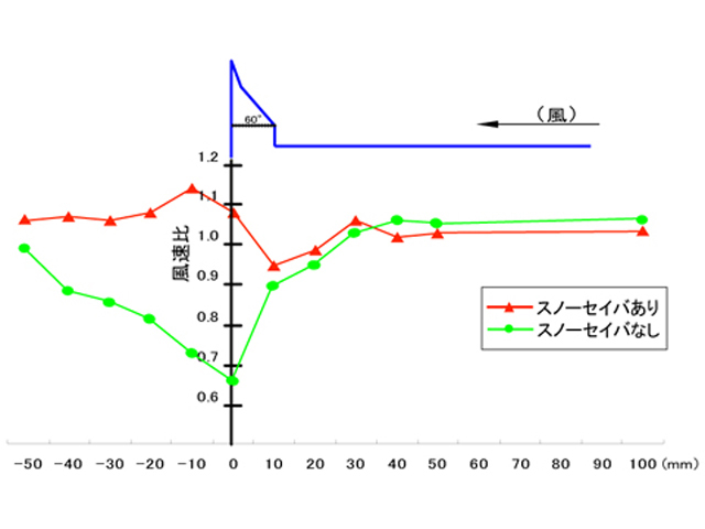 スノーセイバは様々な実験により、雪庇の発生を防止、軽減するための最適な形状を採用しました。